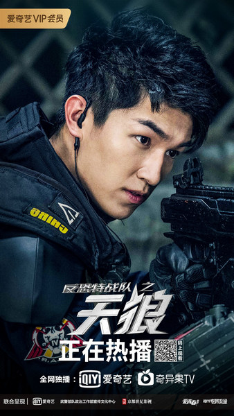 由爱奇艺、武警部队政治工作部宣传文化中心、京都世纪影视公司联合出品,爱奇艺高级总监、奇星戏剧工作室总经理李莅樱任总制片人,尤小刚导演执导,杨旭文、代斯、魏晨、周庭伊、李幼斌、石兆琪、孙振宸等演员联袂出演的高科技反恐军旅剧《反恐特战队之天狼》正在爱奇艺独家热播中。昨晚,为阻拦两国合作工程签约,恐怖分子袭击了秦晓阳的父亲,幸好及时赶到的秦晓阳化解了危机。一次袭击未果,恐怖分子又绑架了W国工程负责人的孩子。今晚,唐石将化身孤胆英雄解救人质,秦晓阳为保护姜玫再入险境,他们能否平安归来?唐石与秦晓阳首次敞开心扉对话,诉说彼此对姜玫的情感,三个年轻人间的感情脉络今后又将如何发展?