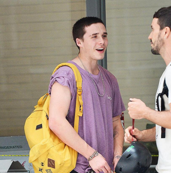 颜值过关!贝家大公子剃平头与同学热聊帅气不减