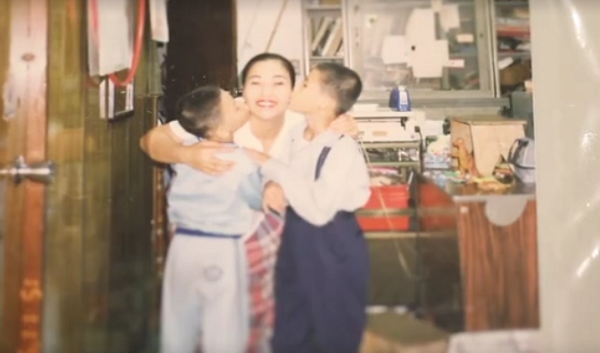 萧敬腾和哥哥一起亲吻妈妈的脸