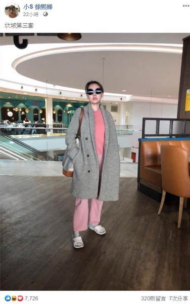 小S昨先是在社交平台上曝光出席戛纳影展的造型,时尚百变造型让网友们大为称赞。除了曝光灰色西装造型服装,以及彩色小点点长洋装外,最后一套造型竟然是穿着拖鞋的慵懒风,只见她穿著粉红色系的卫衣,外面搭著灰色外套与拖鞋、袜子,照片一出立刻引起网友热议。网友们纷纷在底下留言表示,“睡衣穿的好,时尚没烦恼”、“有点像护士要下班了”、“这时尚只有s姐可以,轻松驾驭,无敌”、“这套最大气”、“人民币赚多了有广场舞大妈化的迹象”、“姐的时尚太前卫,我看不懂”。