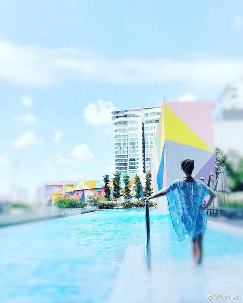 林心如最近把握工作空档散心,只见她一手插腰、一手扶着泳池畔的栏杆,扎起长发,换好比基尼,时而远眺前方美景,时而搞笑举高手拍照,似乎已经准备游个过瘾一解暑气。