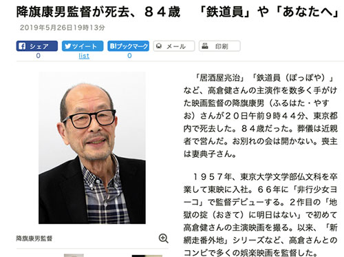 日本导演降旗康男去世 曾执导《铁道员》等影