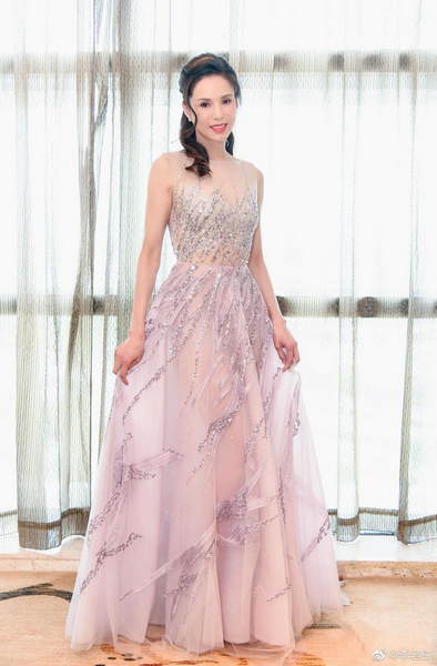 童话里的公主!李若彤穿裸粉透视礼服 女神范儿十足!