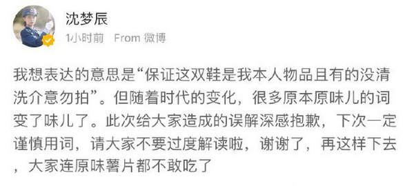 沈梦辰二手鞋标沈梦辰原味登热搜 发文道歉不要过度解读后秒删
