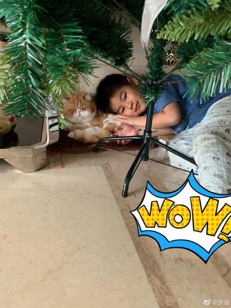 5月27日晚,沙溢通过微博晒小鱼儿和猫咪亲密接触的照片,并写道:“爱和小动物亲密接触的小朋友。”照片中,小鱼儿和猫咪亲密的躺在一起,胖乎乎的小手搭在猫身上,满脸的温柔,十分可爱