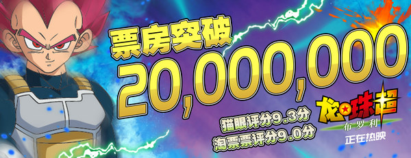 龙珠系列最卖座电影《龙珠超:布罗利》正在热映中,首周末突破2000万票房,刷新前作保持的票房成绩,成为龙珠系列在中国内地的最卖座电影。影片在各平台都收获高分口碑:猫眼9.3分、淘票票9.0分,高居同档期电影猫眼评分第一。不光因其良心制作得到观众满分推荐,其中更有观众在电影院连刷8遍,热情表示“只要你还在,我就一直看”。影片正在全面热映中。