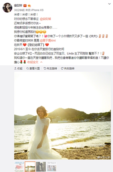 安以轩六一再度悼念好友安钧璨:你的妹妹夏于乔结婚了