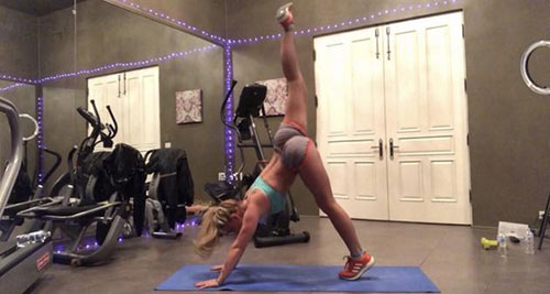 近日,布兰妮通过个人社交网站晒出自己练习舞蹈的照片,并配文:“This is called a needle in dance。 I couldn’t do it at age 8 but I can now... who would have thunk it? ” 称自己八岁时完成不了的舞蹈动作“Needle”,现在却可以做到了,谁想得到呢?照片中,布兰妮双手扶地,腿向上伸展,呈180度,展现完美蜜桃臀。
