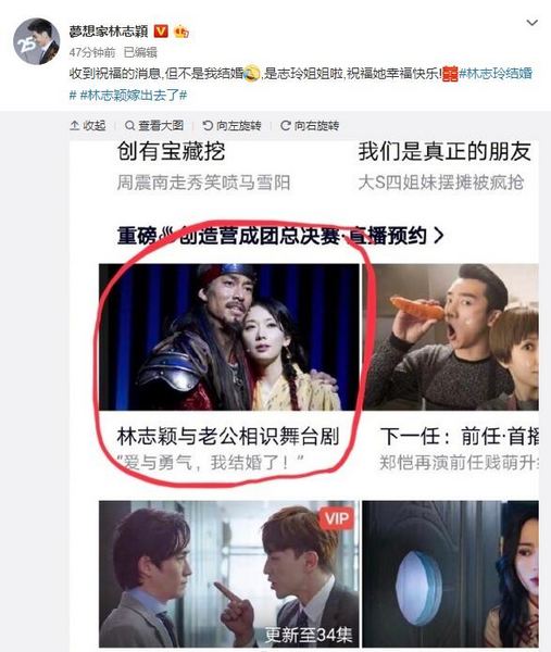 网友纷纷回复:“笑死。。林志颖与老公相识舞台剧”“林志颖林志玲林志炫还以为你们是一家呢”“不要蹭我志玲姐姐热度行吗?”