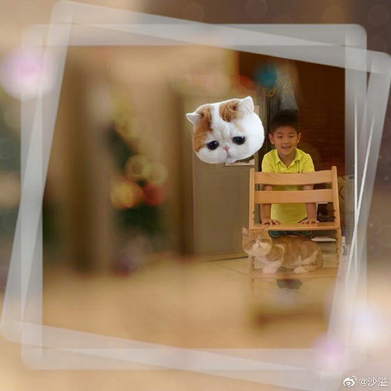 5月19日,沙溢晒出小鱼儿和猫玩耍的照片,并称“尼莫说他要推着小宝宝出去遛弯儿”,照片中的小鱼儿穿着黄色T恤,双手撑在小猫咪卧着的架子上,玩得十分欢乐。