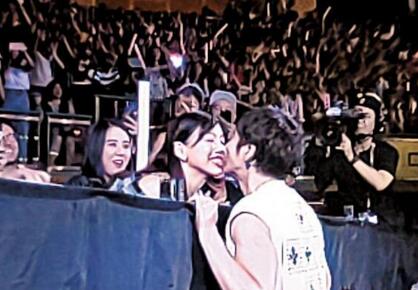 完秀受访,提到相隔7年,今年11月再在红馆开唱,问到会否也带同太太来港?他称:“应该会,太太也很喜欢香港。有可能吧,小朋友也很喜欢香港的,上次也试过一家人来香港玩。”笑问亲吻太太这一幕是否也会带到香港,不会厚此薄彼?他笑笑说:“这是第一次,在内地演唱会也没有,因为不能走下台,而这次是很自然的,因为看到一位美女在,就走过去了,加上旁边的人也在亲吻,所以我就趁机会,哈哈。”