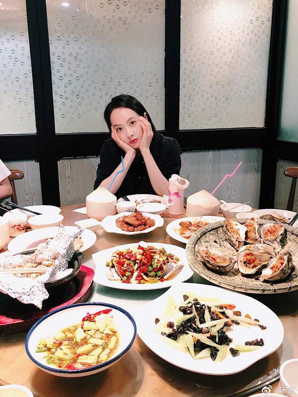 14日,宋茜晒出几张吃美食的照片,配文写道:来广州,吃大餐呀来呀来呀~照片中,宋茜坐在一大桌子食物面前,拿起手机记录,托下巴比心,十分可爱。