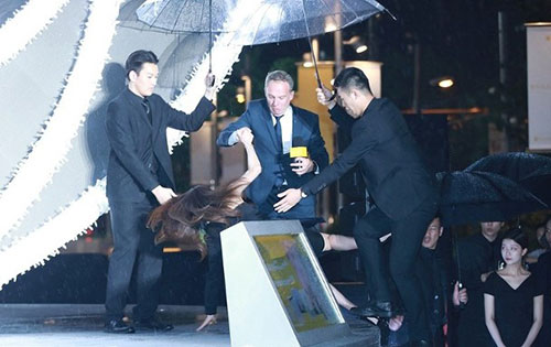 雨天路滑!舒淇出席活动意外摔倒面露尴尬