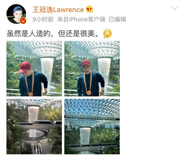 北青网娱乐讯:近日,演员王冠逸微博曝光一组游客照,并配文写道:“虽然是人造的,但还是很美。”原来,王冠逸已结束新加坡拍摄回到国内,并化身游客参观一家绿色花房。只见他身穿深蓝卫衣搭配卡其色长裤,头戴枣红色棒球帽,置身于茂密的绿色丛林中,衬托的王冠逸本人更加帅气。许多网友在底下纷纷评论道“欢迎失踪人口回归!”、“好久不见,太想你了!”、“为老王归来打call!”