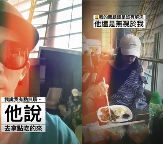 当修杰楷开口反应,“我有点无聊。”结果贾静雯仅说,“去拿点东西来吃。”修杰楷拿完食物回来后,将镜头拍向贾静雯,无奈表示,“谁叫你不理我。”结果老婆依旧沉默不回话,面对女方一边专注看着视频、一边将桌上食物塞入嘴中,他忍不住标注代表“掩面”的脸型符号,无奈表示:“我的问题还是没有解决,他还是无视于我。”