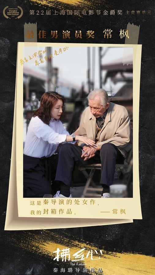 6月23日晚,演员常枫凭借电影《拂乡心》荣获第22届上海国际电影节金爵奖最佳男演员奖项。《拂乡心》是秦海璐作为导演的第一部作品,也是今年96岁高龄的常枫先生的封箱之作。