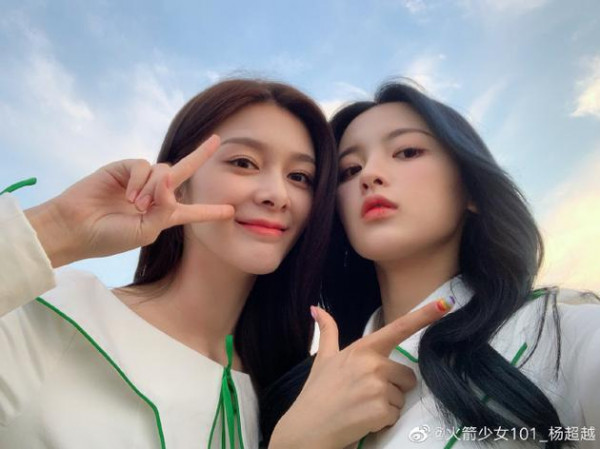 6月24日,杨超越在微博晒出和傅菁的合照,写道:“青青草原游客照。?”随后傅菁评论称:“我刚准备发这张!逼得我只能发另外一张了。”照片中二人妆发精致,傅
