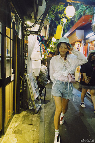 日前,包文婧微博晒出自己去日本工作忙里偷闲游玩时的照片,朋友们亲密合影的包文婧梳起刘海,超爱比“剪刀手”,看起来少女感满满。