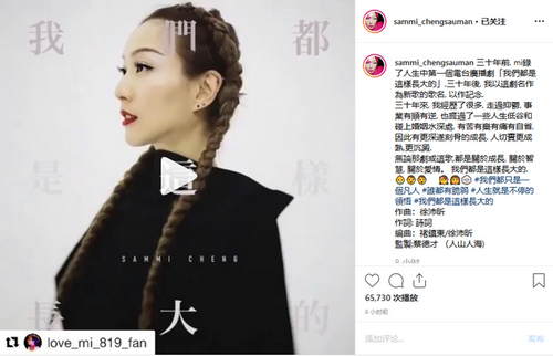 郑秀文表示,”三十年来,我经历了很多,走过抑郁,事业有顺有逆,也捱过了一些人生低谷和碰上婚姻水深处,有苦有乐有痛有自省,因此有更深遂刻骨的成长。人切实更成熟,更沉淀。无论那剧或这歌,都是关于成长,关于智慧,关于爱情。我们都是这样长大的。#我们都只是一个凡人 #谁都有脆弱 #人生就是不停的领悟 #我们都是这样长大的。“