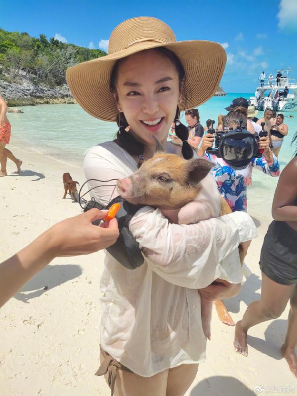 张雨绮懒理赡养费风波 怀抱小猪现身加勒比海度假