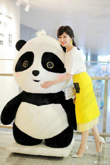 6月27日,赵雅芝晒出一组身穿白色T恤搭配黄色拼接裙的美照,并配文:“愿四川乐观向上,平平安安”,与熊猫玩偶亲密合影的赵雅芝红唇惹眼,笑容满面。