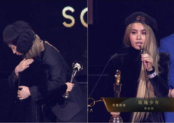 而“年度歌曲奖”则由蔡依林凭《玫瑰少年》获得,她从颁奖嘉宾五月天手上领奖,并与阿信拥抱,《玫瑰少年》是由蔡依林和阿信共同作词的。蔡依林打趣道:“谢谢我的绯闻网友阿信,让这首歌充满生命力。”她还表示要用和管心去爱身边的人。