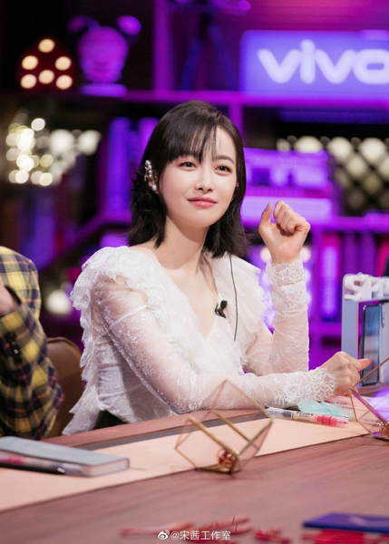 7月3日,宋茜一身白衣仙裙亮相《心动的信号》,耳朵上的精灵耳环很吸睛,华丽复古不失灵性。