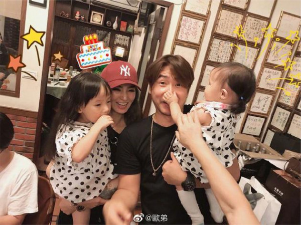欧弟庆生晒一家四口合影 两个女儿激萌
