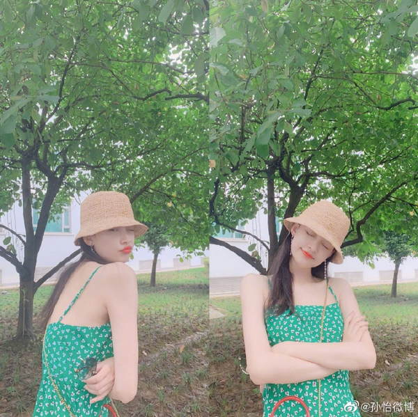7月5日,孙怡微博晒出清新风的夏日街拍,并配文称:“见男朋友的你or见闺蜜的你。”编织太阳帽搭配波点绿的吊带裙,清凉十足,纯黑运动装,上身运动衫微露肚脐,更显纤细腰线。