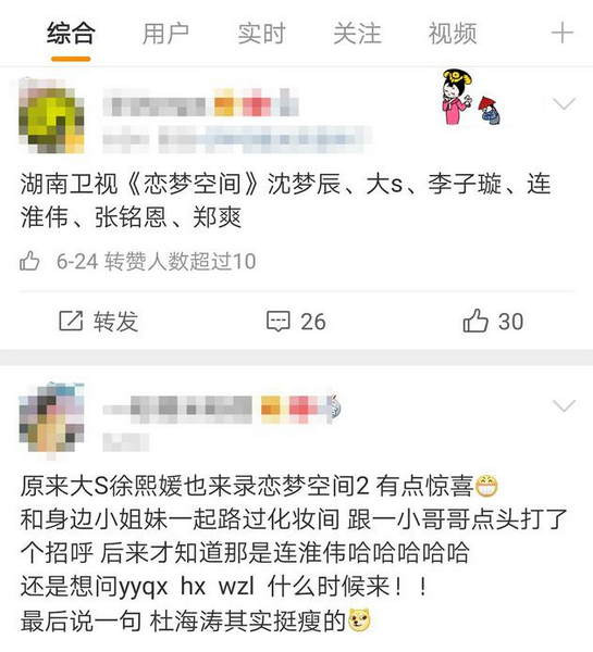 据悉,大S录制的应该是素人恋爱节目《恋梦空间》,已有网友在录制现场偶遇。此外,共同参与录制的还有沈梦辰、杜海涛、连淮伟等人。
