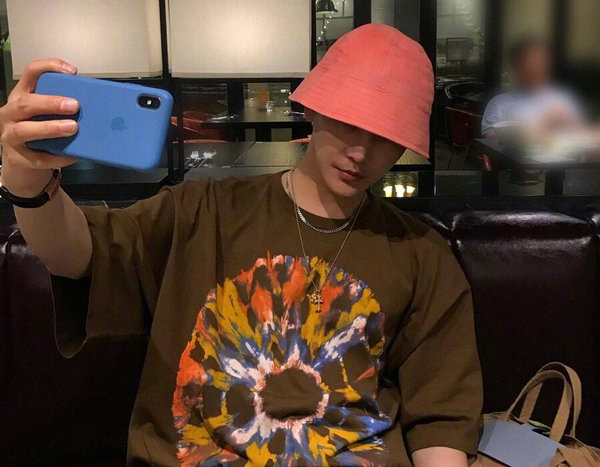 孙坚晒最新写真 身穿咖色T恤配牛仔裤潮范十足