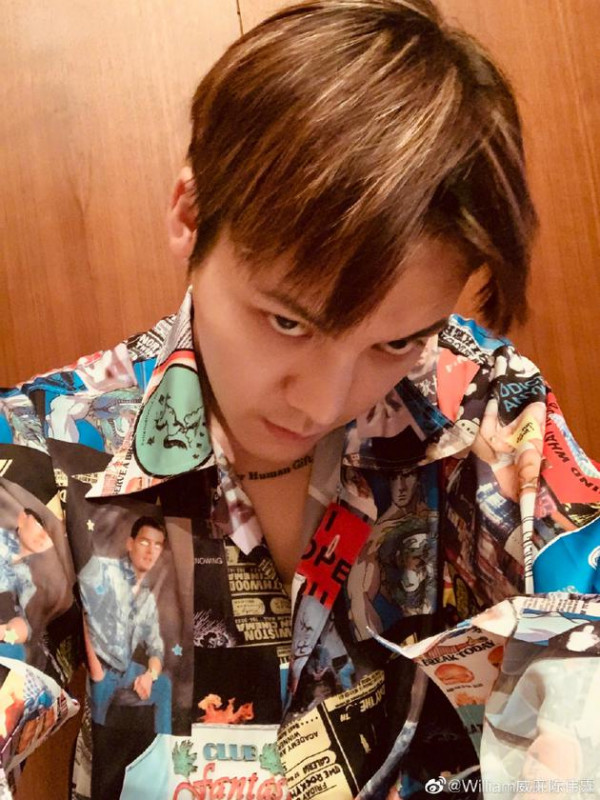 陈伟霆穿花衬衣玩45度角自拍 双眼电力十足