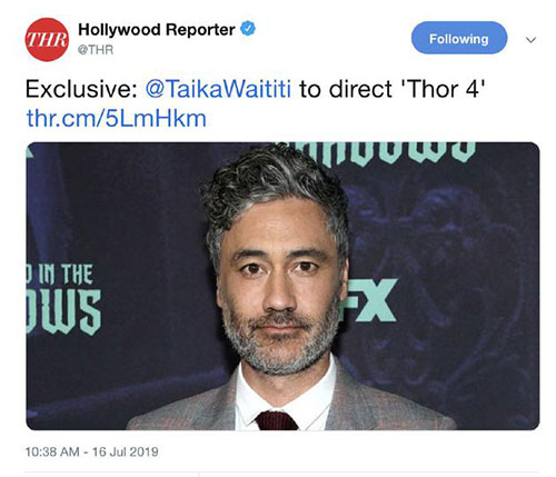 根据多家国外媒体报道,《雷神3》导演塔伊加·维迪提确定回归漫威,执导《雷神4》,“锤哥”克里斯·海姆斯沃斯也将一同回归。《雷神3》是该系列票房最高的一部,在全球共取得8.53亿美元票房,远远超过之前两部。