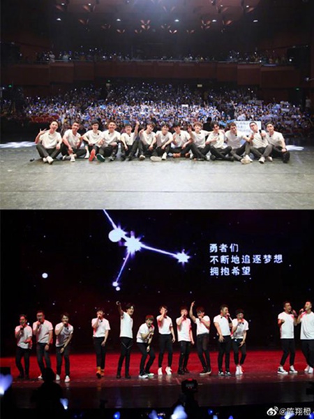 18日晚,《我家那小子》第二季也终于迎来了收官,在这最后一期中,武艺选择了将10届《快乐男声》的12强重新聚齐。武艺、陈翔分别在微博晒出2010届快乐男声12强重聚的大合影,并写道“用最自豪的方式喊出来:我们是—2010快乐男声!”“9年,我们都很棒”。李炜、刘心、武艺、@谭杰希、陈翔、李行亮、王野、张建波、吴俊余、玉米提、Delay组合黄迪/惠雷、赵帆再合体唱《我的舞台》,感动众人。