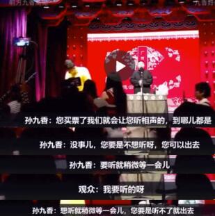 29日,有大v在网上晒出视频,视频中是德云社成员秦霄贤孙九香的相声表演专场,开场后女粉丝们排队献上礼物和信件。台下观众不耐烦要求其赶紧讲相声,相声演员孙九香回怼:要听就等一会儿,你要听不了就出去!全场