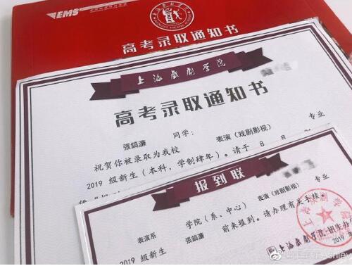 洪欣儿子张镐濂晒上戏录取通知书:已满怀期待
