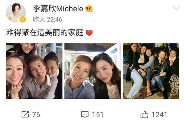 3日晚,李嘉欣在网上晒出了参加家庭聚会的美照,李嘉欣携老公与多位好友一起聚餐拍照,氛围十分融洽。照片中李嘉欣身穿淡蓝色薄款休闲裤,笑容十分灿烂,李嘉欣身后则是老公香港富商许晋亨。