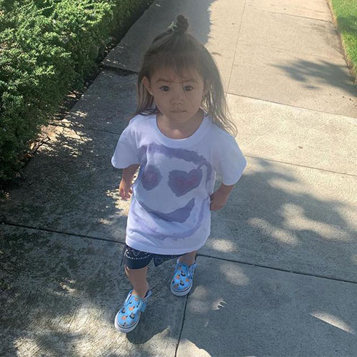 8月5日,陈冠希在个人社交网站上晒出女儿Alaia的照片。照片中Alaia扎着半丸子头,穿着一件正面印着巨大笑脸的短袖,深色短裤和蓝色帆布鞋,睁着大眼睛看向镜头。陈冠希配文:“我们家周六早晨的散步。”