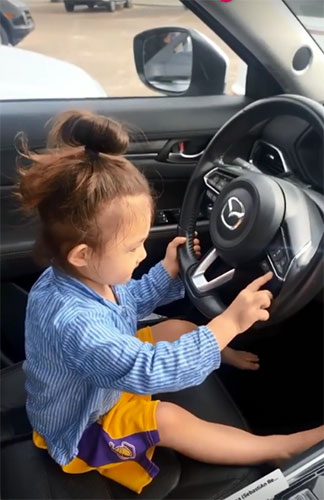 近日,一段陈冠希4岁女儿手握方向盘的视频在网络上曝光。视频中,陈冠希女儿Alaia扎“冲天丸子头”,穿蓝色条纹衬衫。虽然脚还够不到地面,但她一会儿转动方向盘,一会儿按住方向盘上的按钮,姿势满分,车“开”得有模有样。