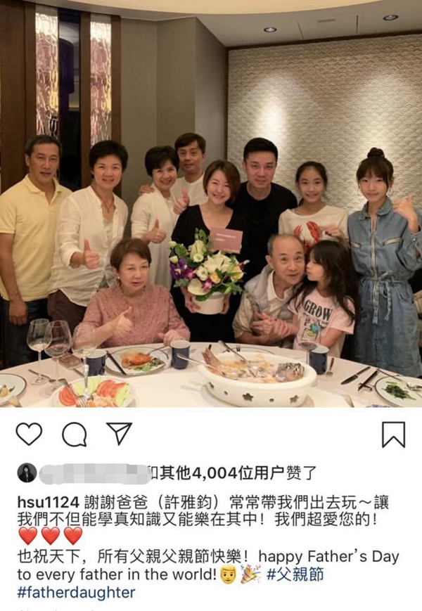 8月8日,小S的大女儿发布了一张全家福。小S的公公婆婆也罕见入镜。
