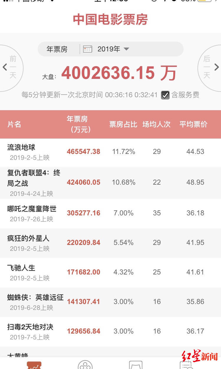 2019全国电影票房破400亿 比去年晚了三天