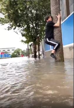 8月10日下午,薛之谦在微博上分享了一则视频。视频中薛之谦爬在一棵被洪水淹没一半的电线杆,还在挣扎着继续往上爬,并配文“通告途中”。
