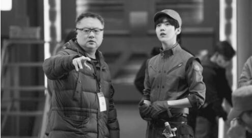 图为《上海堡垒》导演滕华涛、主演鹿晗的工作照。