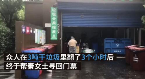近日,在上海松江,某小区住户秦女士误将两张潘玮柏演唱会门票当作垃圾扔掉。因为上海实行了垃圾分类,秦女士的老公和小区物业人员用了3小时在3吨干垃圾中翻出了门票。售票方已同意给秦女士换票,秦女士表示:&l
