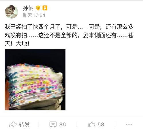 孙俪晒超厚剧本 标签贴得密密麻麻超认真