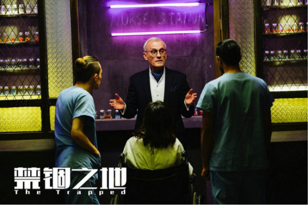 身为本片中的“最优雅反派”,罗伯特·克耐普饰演的维克多始终保持绅士气质,而眼神与肢体中透出的冷峻又令人不寒而栗。身着精致西装的他站在冷色调灯光和充满药品的“护士站”前,女主角吴若昕又被扣在轮椅中无法动弹。简单的人物关系场景,已将康复中心的窒息氛围传递到位。