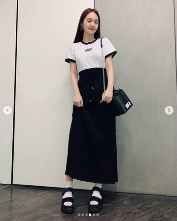 杨丞琳13日分享穿搭照,身穿简单的白色滚黑边T恤,配上一条盖过脚踝的黑长裙,把看似普通的服装穿出了自己的时尚感。在裙子版型和拍照角度的加持下,162公分的杨丞琳看起来更加修长,尤其下半身仿佛又拉长许多。