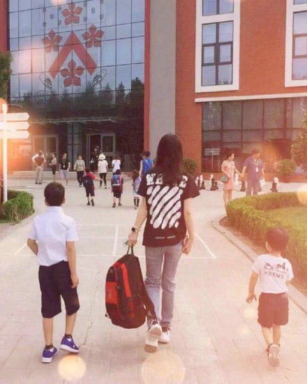 8月15日,黄圣依晒出了送两个儿子上学的背影照,表示:“结束愉快的暑假,一起上学啦。喜欢这样温暖的画面,哥俩好。"照片中,黄圣依拎着大书包,领着两个儿子一起向教室走去。送孩子上学的黄圣依穿