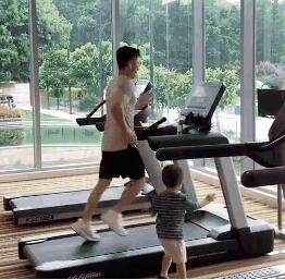 8月19日晚,李小鹏在社交平台上传和儿子在健身房跑步锻炼的视频,幸福地配文写道:“我跑你也跑嘻嘻哈哈小尾巴,动力和幸福满满的爆!”视频中,李小鹏一身运动短衣,在跑步机上健身,有