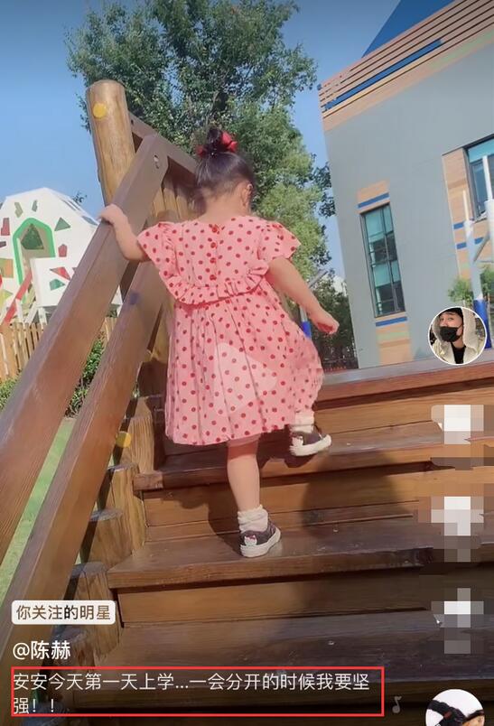 8月20日陈赫在某视频平台晒出送女儿安安上学的视频,陈赫附文“安安今天第一天上学…一会分开的时候我要坚强”,尽显一位“老父亲”的心酸。如今陈赫减少工作量,只为了陪伴女儿。